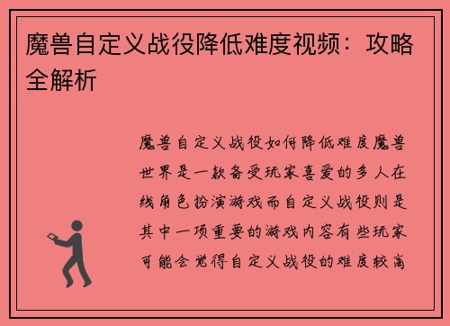 介绍魔兽官方对战平台 魔兽官方对战平台是暴雪娱乐公司为魔兽世界玩家提供的一个在线对战平台。它为玩家提供了一个公平、公正的竞技环境,让玩家可以在全球范围内与其他玩家进行对战。随着技术的发展和用户需求的变化,对战平台的分辨率调整成为了一个重要的问题。 分辨率调整的重要性 分辨率是指屏幕上显示的像素数量。...